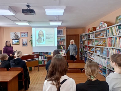 Девятиклассники мегетской школы пришли в библиотеку на очередное мероприятие цикла «Словесный портрет», на этот раз посвященное жизни и творчеству Михаила Евграфовича Салтыкова-Щедрина.