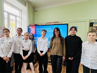 Шестиклассники школы № 10 отметили государственный праздник в компании специалиста библиотеки № 3. Для ребят был организован информационно-патриотический час «Земля русской истории – Донбасс».