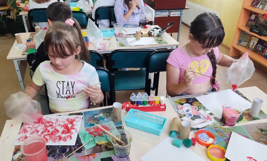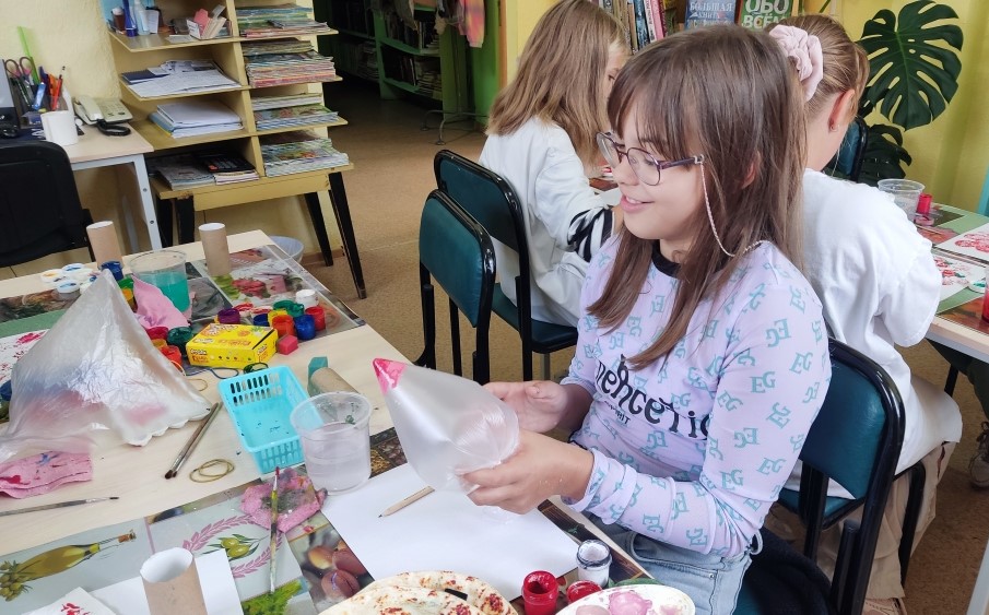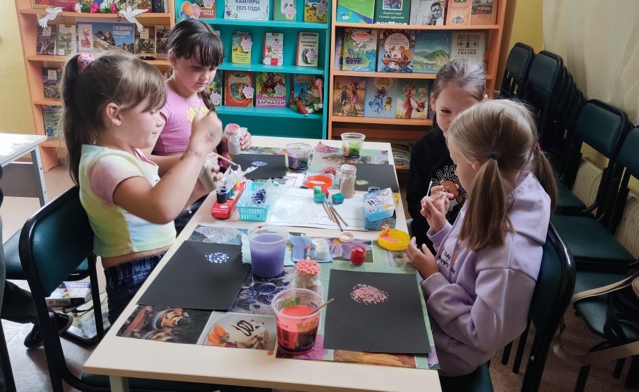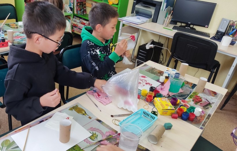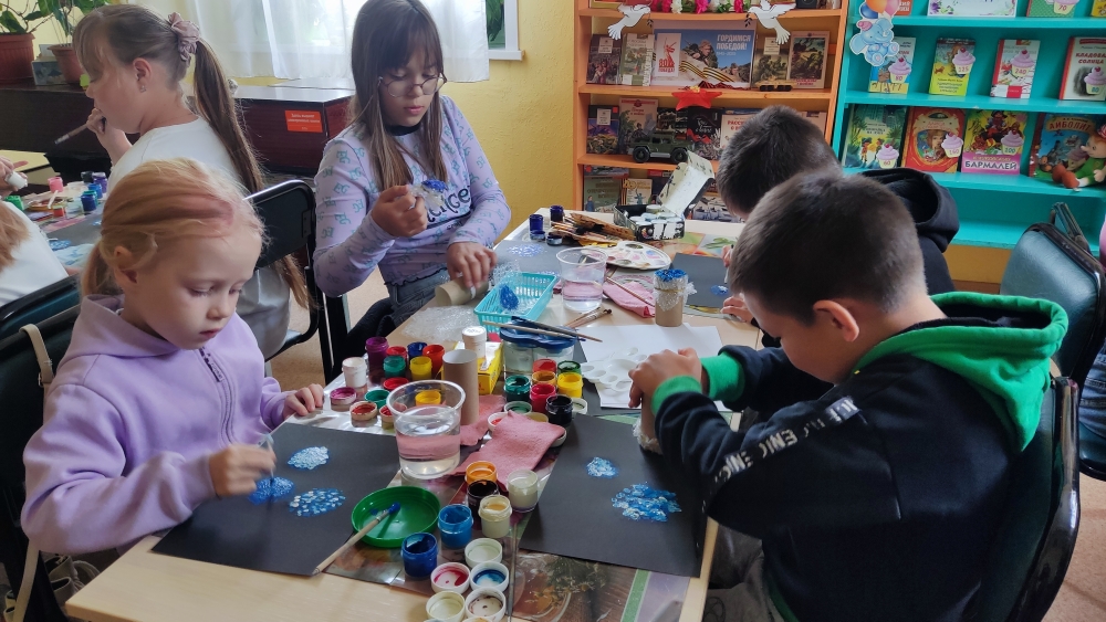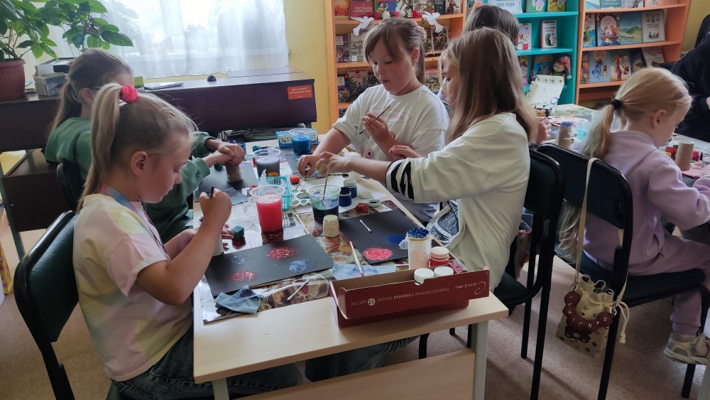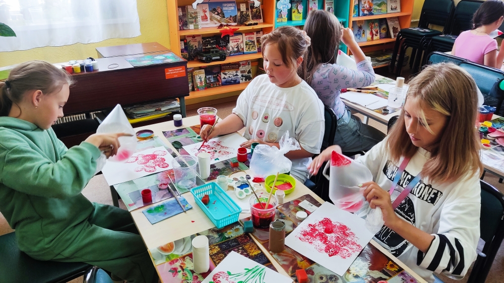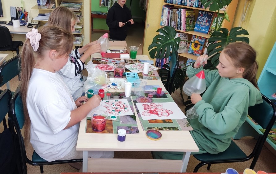 В детской библиотеке № 8 прошло увлекательное творческое занятие под названием «Волшебные краски», посвященное Дню флориста. Его участники с радостью погрузились в мир искусства, используя гуашь и технику отпечатывания для создания ярких и выразительных букетов цветов.