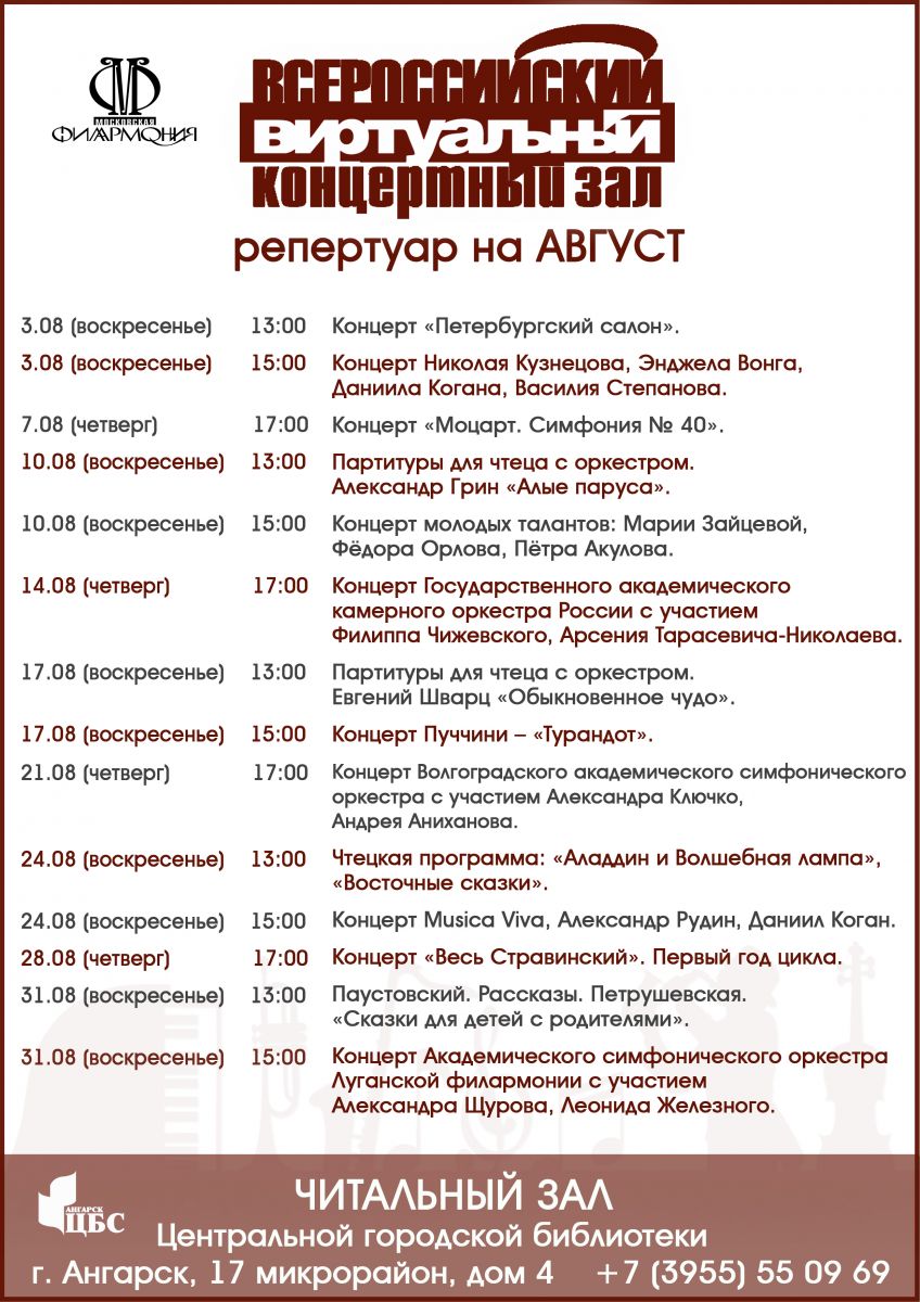 Виртуальный концертный зал. Репертуар на АВГУСТ