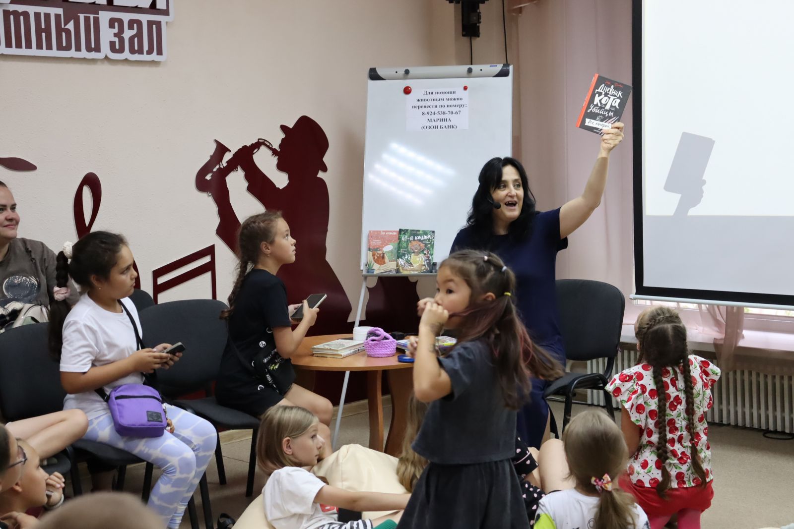 Гости вечеринки познакомились с новыми интересными фактами о кошках, прошли интерактивный квест «По кошачьим следам», а специальный гость мероприятия – известный в Ангарске волонтер, зоозащитник и книгочей Марина Кузьменко провела замечательный обзор новых забавных и очень смешных книжных историй о кошках и их хозяевах.