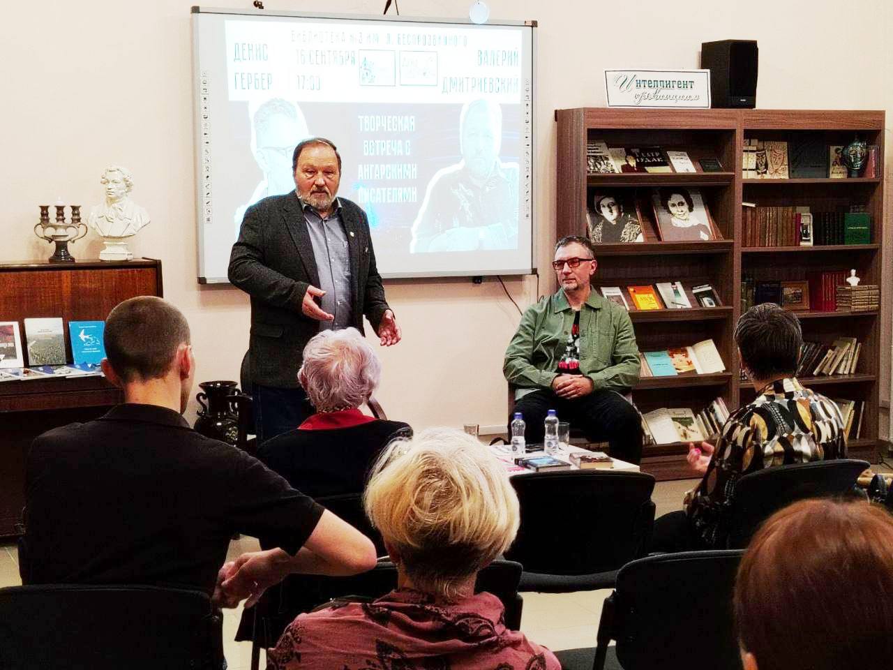 Одна из таких встреч прошла в ангарской библиотеке № 3 им. Л. Беспрозванного. Гостями встречи стали писатель Денис Гербер и поэт, прозаик, редактор литературного альманаха «Ангарские ворота» Валерий Дмитриевский.