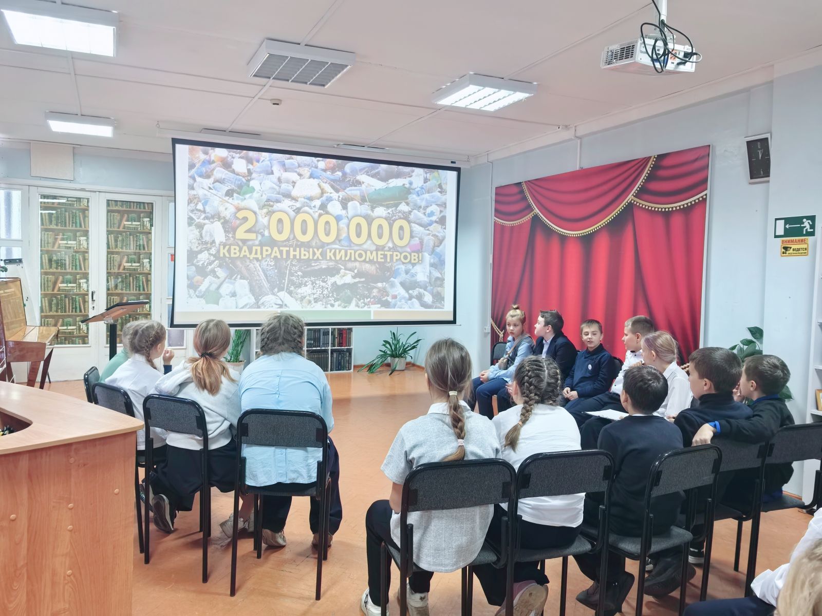 На экоуроках школьники совершили настоящее путешествие в мир экологических проблем. Ребята узнали о существовании гигантского мусорного острова в Тихом океане, поразились масштабам современных свалок, разобрались со сроками разложения различных видов отходов.