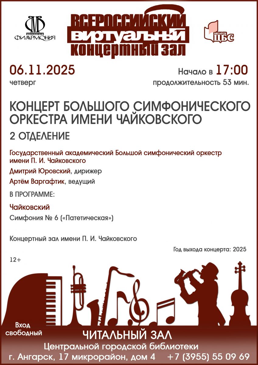 Государственный академический Большой симфонический оркестр имени П. И. Чайковского представляет симфонию № 6 («Патетическую») великого русского композитора Петра Ильича Чайковского. Дирижер – Дмитрий Юровский. Ведущий – Артем Варгафтик.
