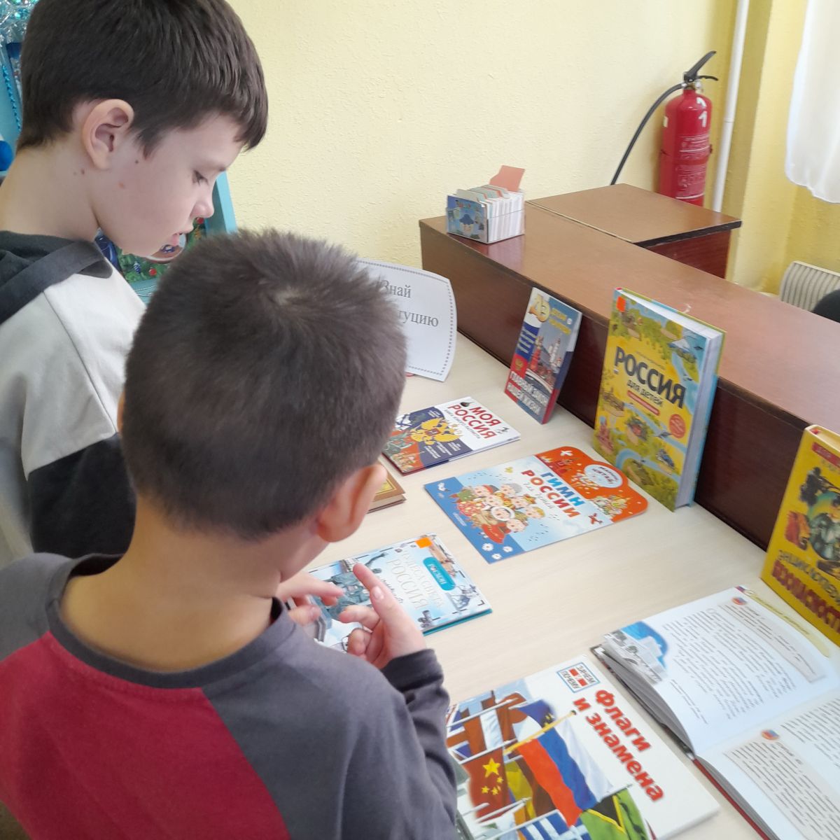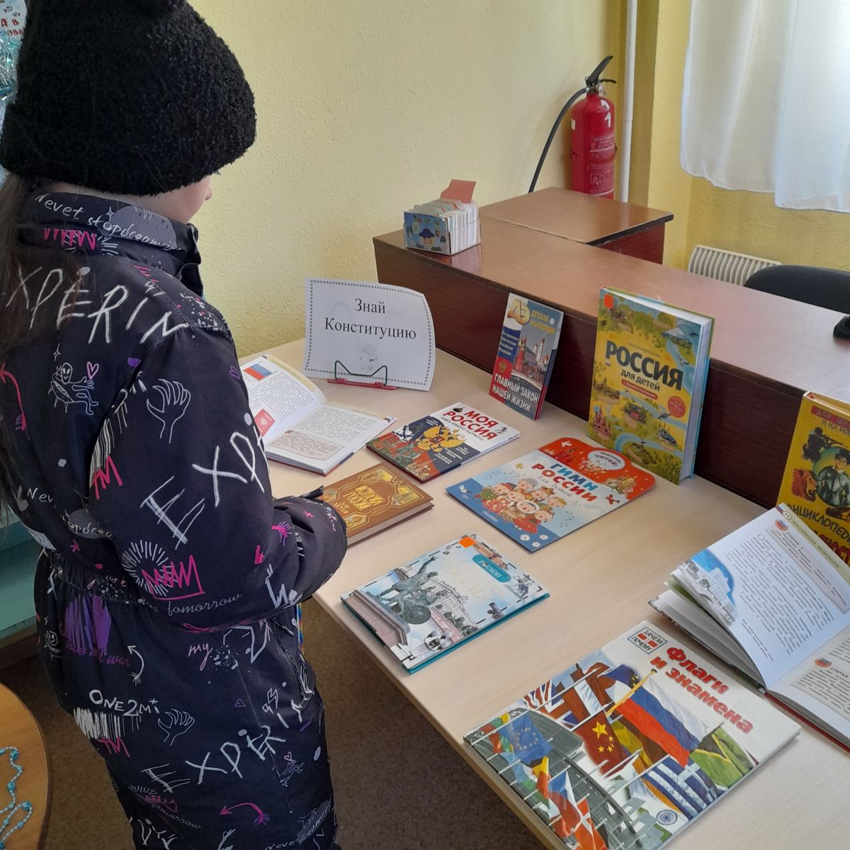 Здесь в течение всего праздничного дня проходили информационные пятиминутки у книжной выставки «Знай Конституцию».