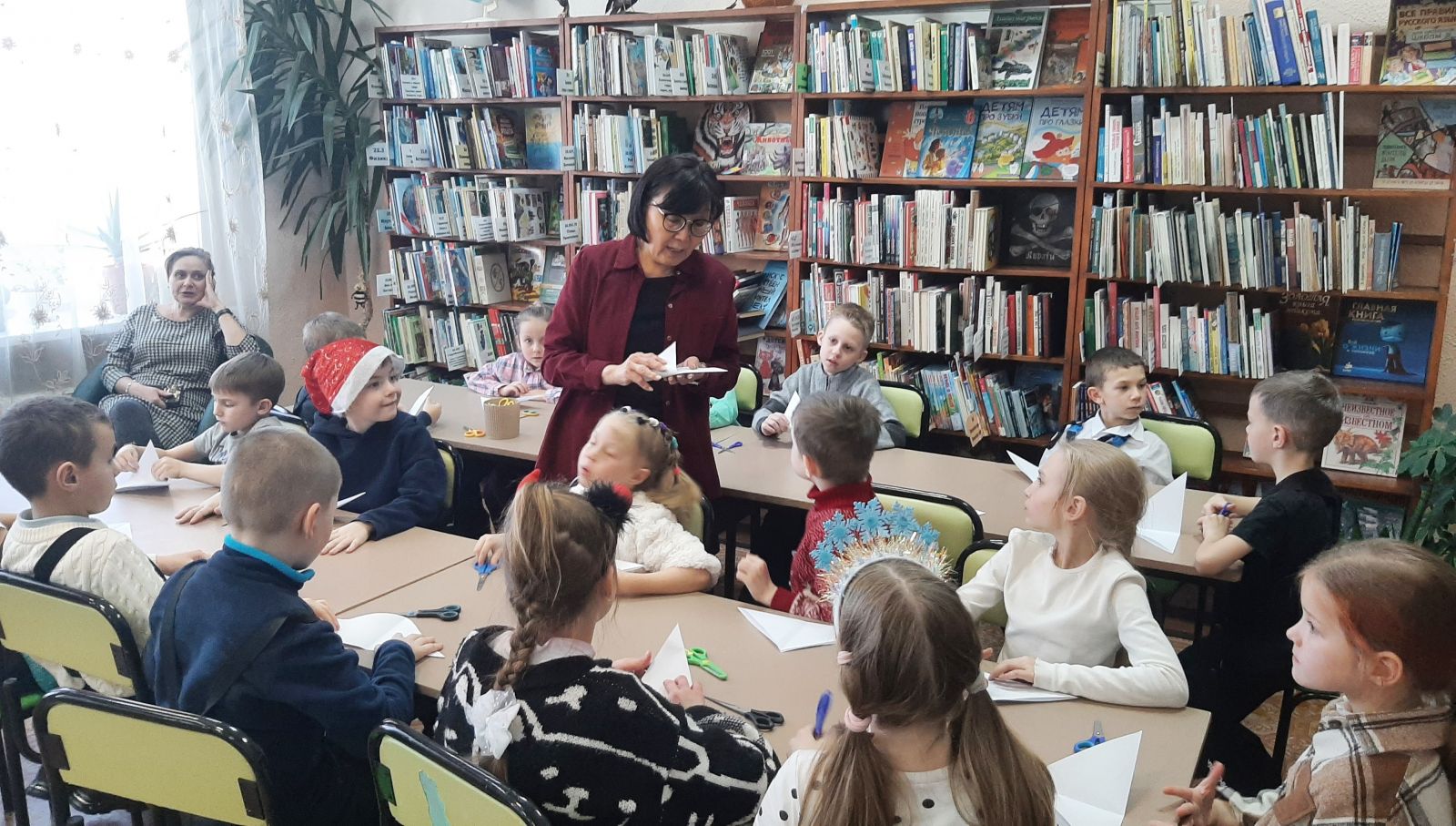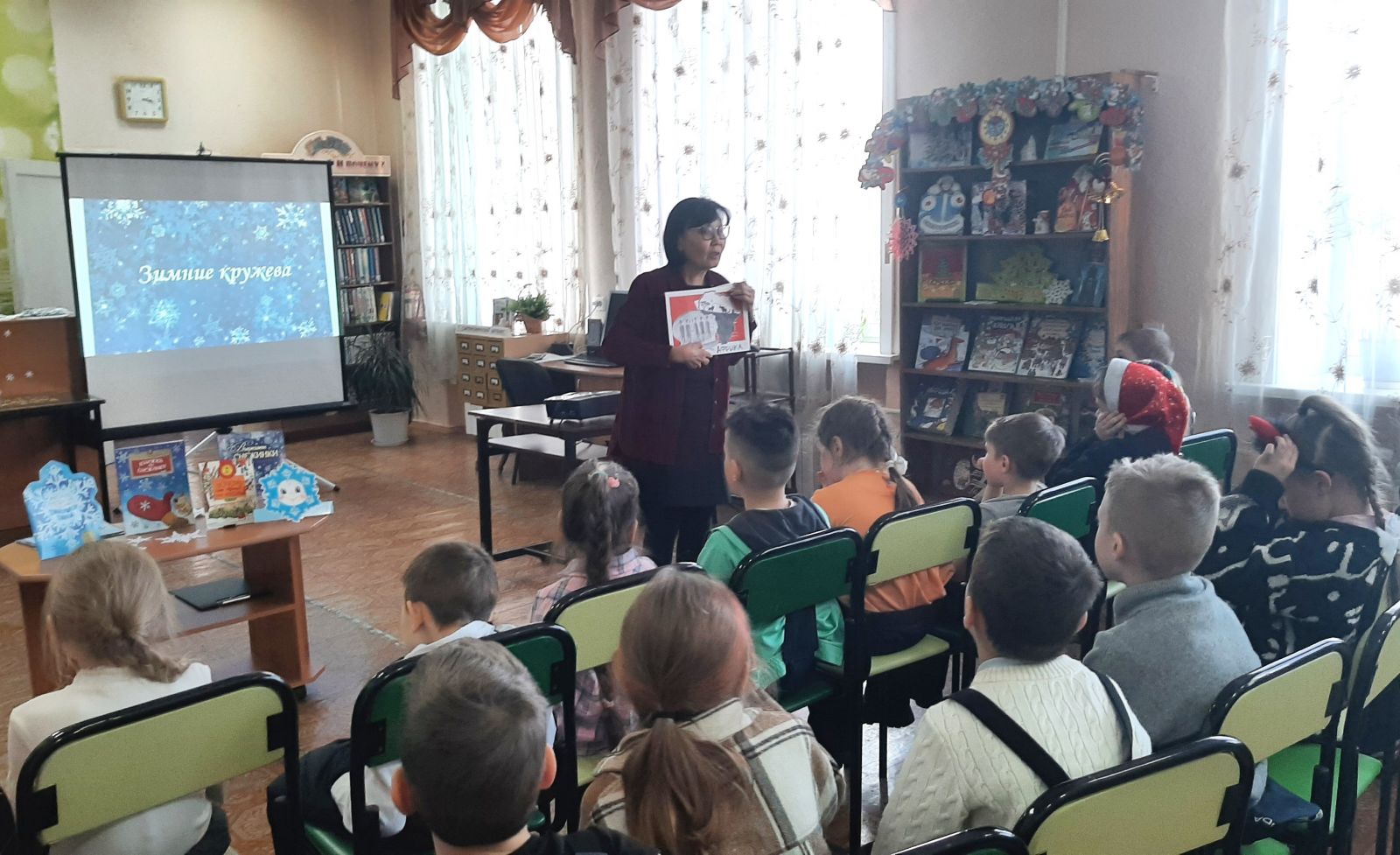 Библиотекарь рассказала, как рождается снежинка. Дети узнали главную тайну – о строении шестигранных пирамид, познакомились с книгами «Книжка про снежинки» Ольги Дворняковой и «Почему снег скрипит под ногами?» Сергея Альтшулера.