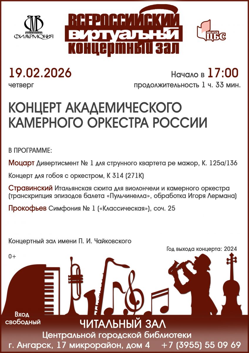 Виртуальный концертный зал Центральной городской библиотеки Ангарска представляет вниманию посетителей концерт Государственного академического камерного оркестра России