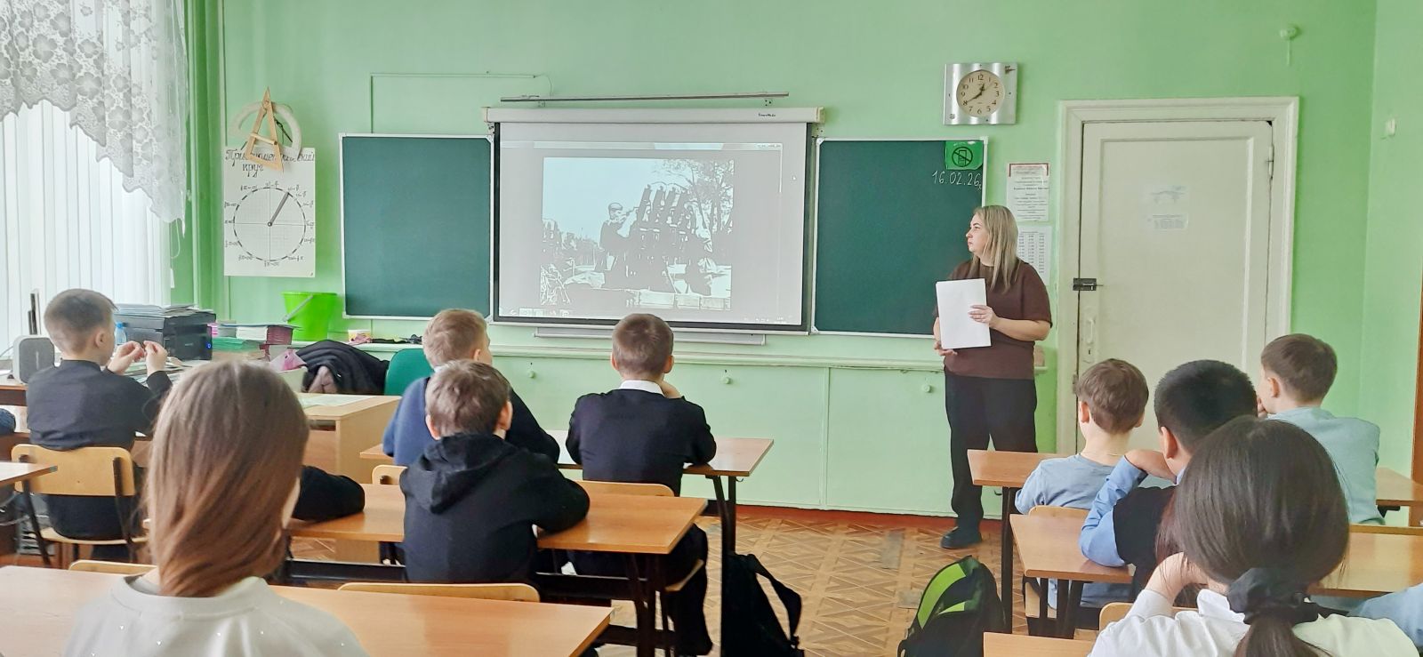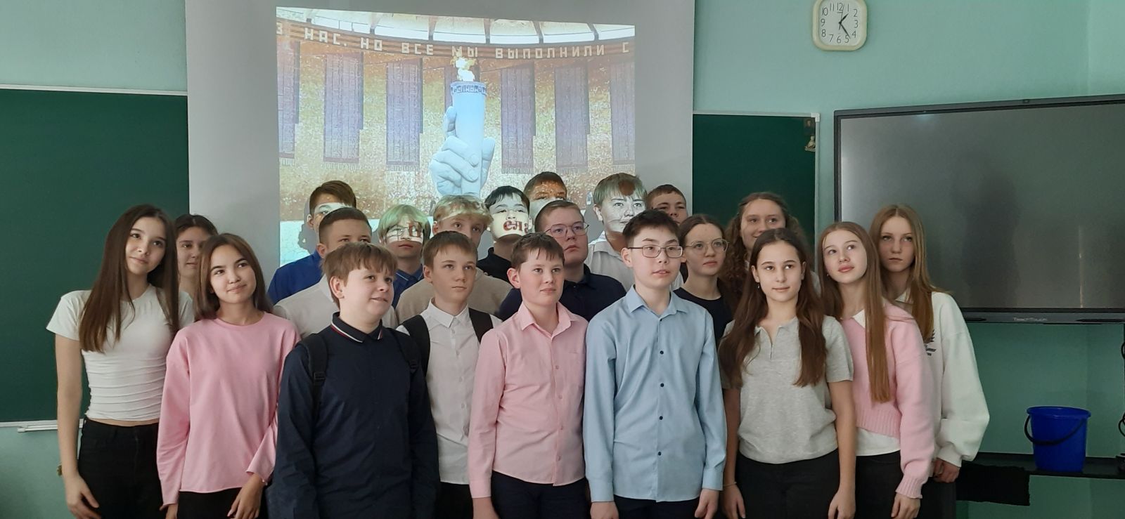В заключение мероприятия с помощью видео «Родина! Светлой памяти павших в борьбе против фашизма» ребята увидели грандиозный памятник-ансамбль «Героям Сталинградской битвы». Побывали в Зале воинской славы, на стенах которого увековечены имена погибших в Сталинградской битве 7200 воинов, и поднялись на вершину Мамаева кургана, к основанию главного монумента – «Родина-мать зовет!»