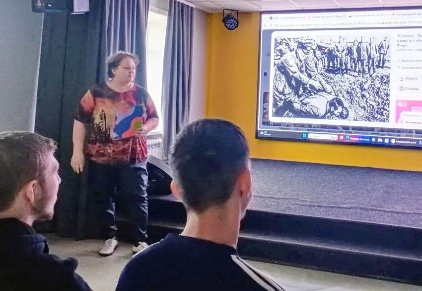 19 апреля в молодежном центре «Скрепка» микрорайона Цементный совместно с библиотекой № 2 прошло мероприятие «Непокоренные: памяти жертв геноцида» для старшеклассников школы № 21.
